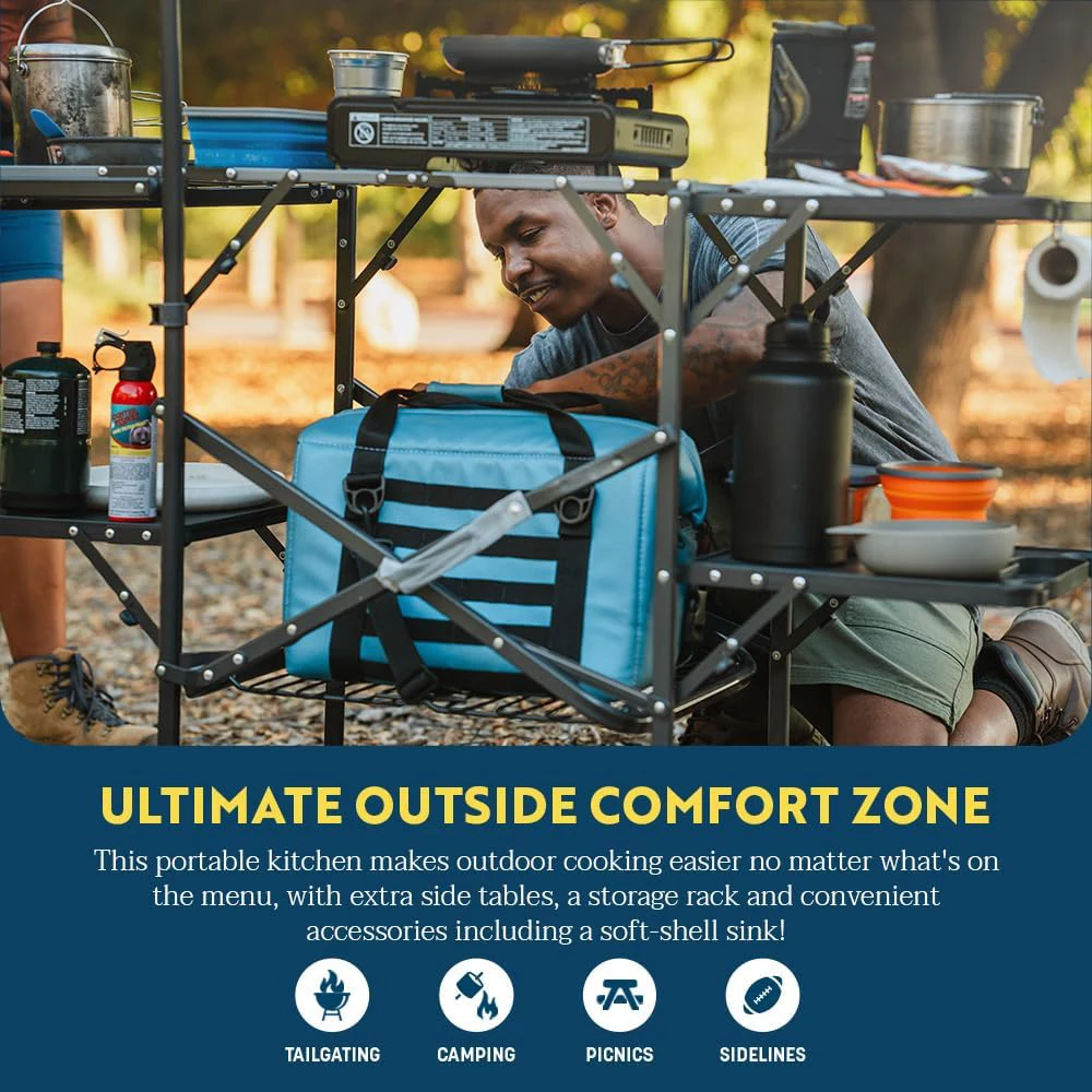 Méjaikan kamps alumunium anu tiasa dipripsi, ngadamel tripsi epik anjeun kalayan Masterter Master Apple Apps ti GCI luar. Dapun portabel ieu dipak nganggo fitur (kalebet tilelep cangkang lemes!), Ngajantenkeun adatna sampurna pikeun ngawenangan atanapi kémping.