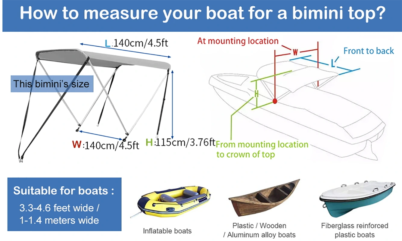 Kanopi dijieunna tina lawon oxford 210D, moistureproof, hujan-bukti. Bahan kelas laut 210D Bimini top mangrupikeun kanopi sunshade multi-fungsi pikeun laut anu tiasa nolak panas panonpoé sareng ngajaga anjeun sareng kulawarga anjeun ku kituna anjeun tiasa nikmati pangalaman anu aman sareng gratis di laut.