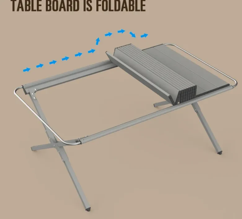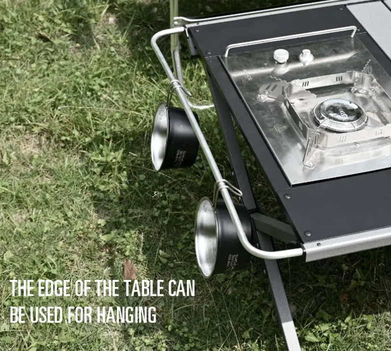 Mulfing Multerged Courfeck Sampurna pikeun koing, barbec dina baju luar, sareng seueur deui. Sisi méja tiasa dianggo ngagantung piring sareng utensil
