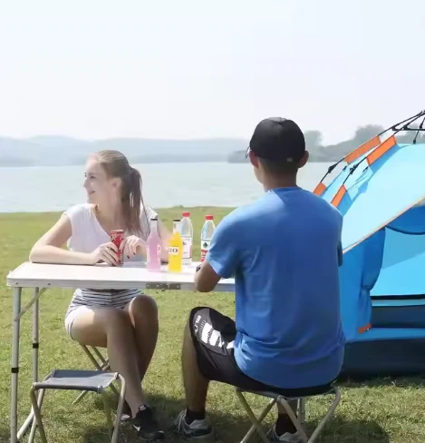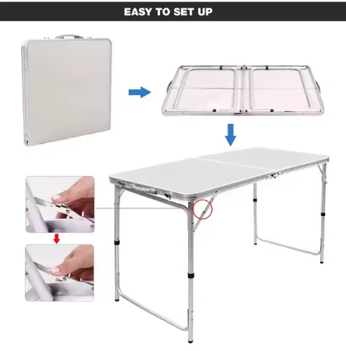 Méja aluminium porting porting, gaduh kagunaan multifisional, kadua jero sareng ka luar, kalebet méja pictik, méja basisir sareng méja Pagchis, anu dianggo pikeun ngéskeun, rv.